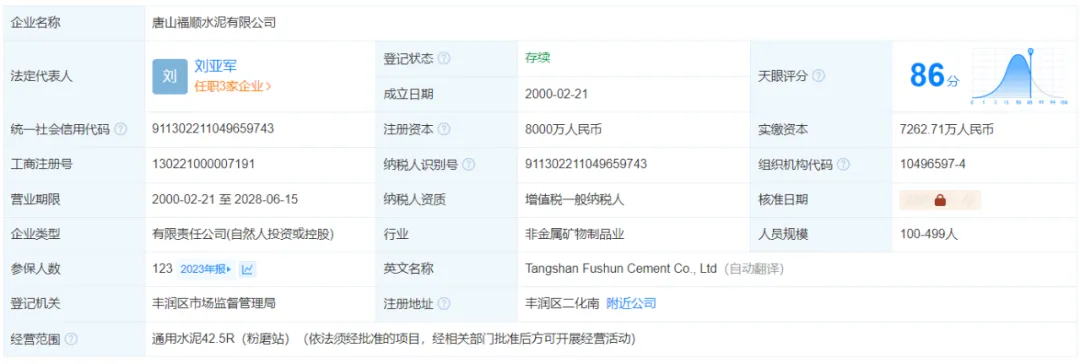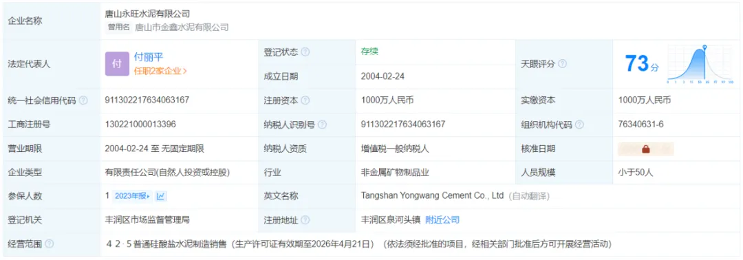 唐山永旺水泥有限公司天眼查公開信息