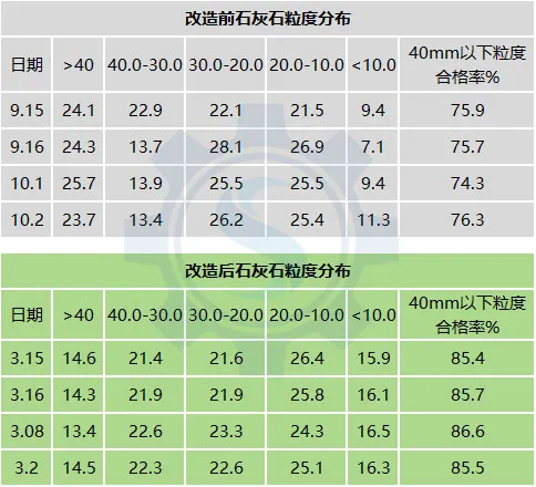 改造前后石灰石粒度分布對比