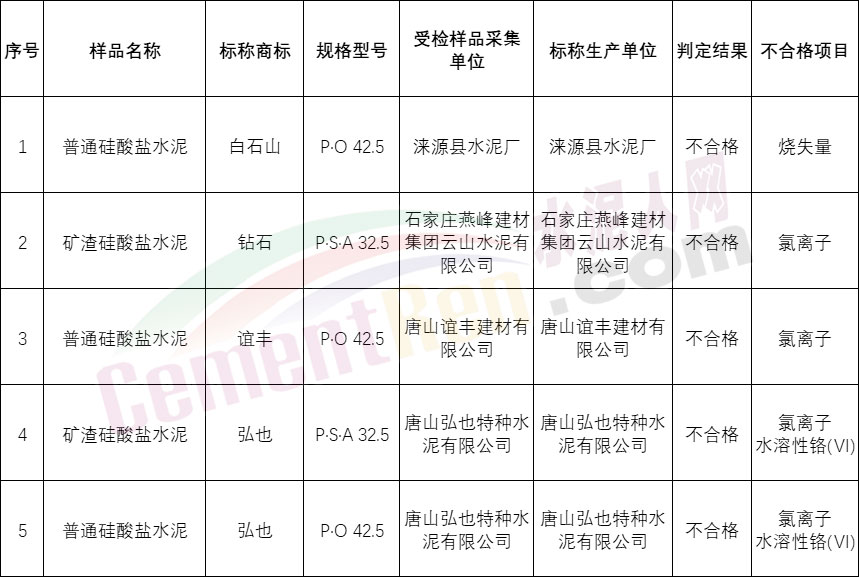 河北省市場監(jiān)管局為進(jìn)一步加強我省產(chǎn)品質(zhì)量安全監(jiān)管,采取購買樣品方式,抽查檢測水泥等產(chǎn)品,檢出水泥不合格樣品5批次。