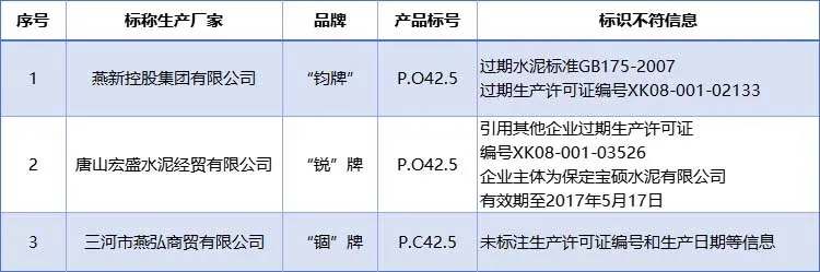 同期發(fā)現(xiàn)的標(biāo)稱為興隆縣福成水泥有限公司生產(chǎn)的“福成”牌P.C42.5水泥一批次細(xì)度和氧化鎂項目與標(biāo)準(zhǔn)要求不符。